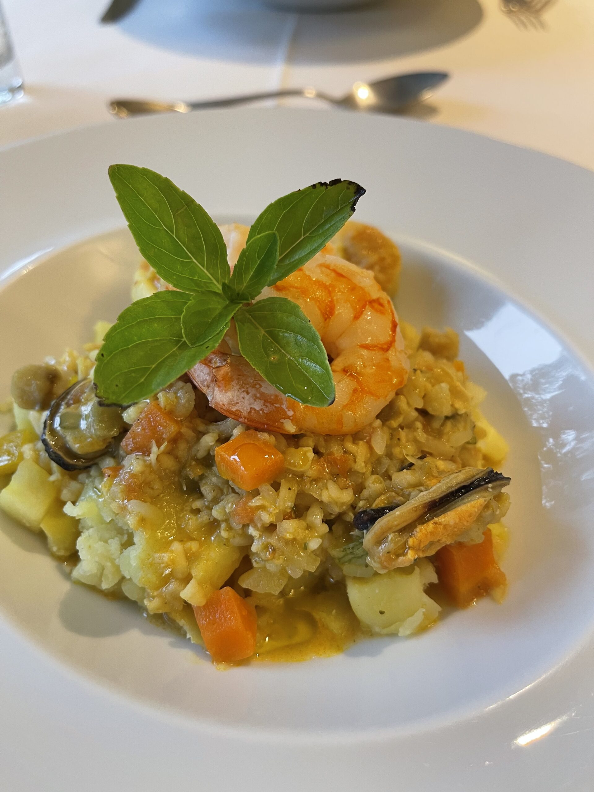 Muitas pessoas me perguntaram se eu passei fome durante a estada: Não, não passei fome. As refeições são equilibradas, muito saborosas e no meu caso sem restrições. A variedade de receitas é enorme e a gastronomia do hotel é de alto nível. São seis refeições diárias: café da manhã, lanche da manhã, almoço, lanche da tarde, jantar e ceia. O almoço e o jantar têm menu gastronômico e vêm com entrada, prato principal e sobremesa.