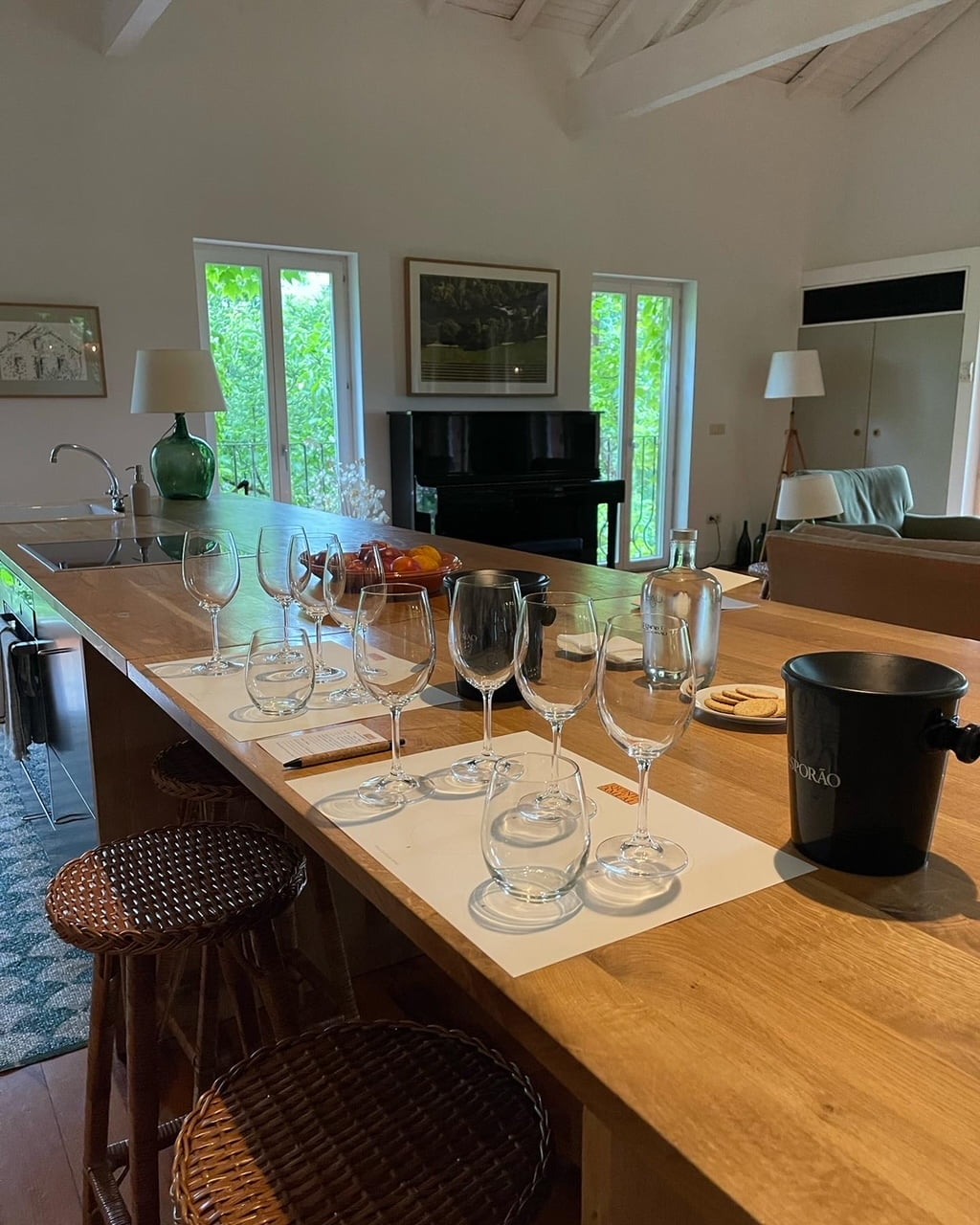 A Casa Grande fica no centro da Quinta do Ameal. Rodeada por arvores, entre a piscina e as vinhas. Possui cozinha e sala de uso comum, igualmente com entrada independente. É onde ocorrem as degustações de vinhos. A cozinha está totalmente equipada e disponível para as refeições e para uso de quem visita a vinícola. Achei isso o máximo!