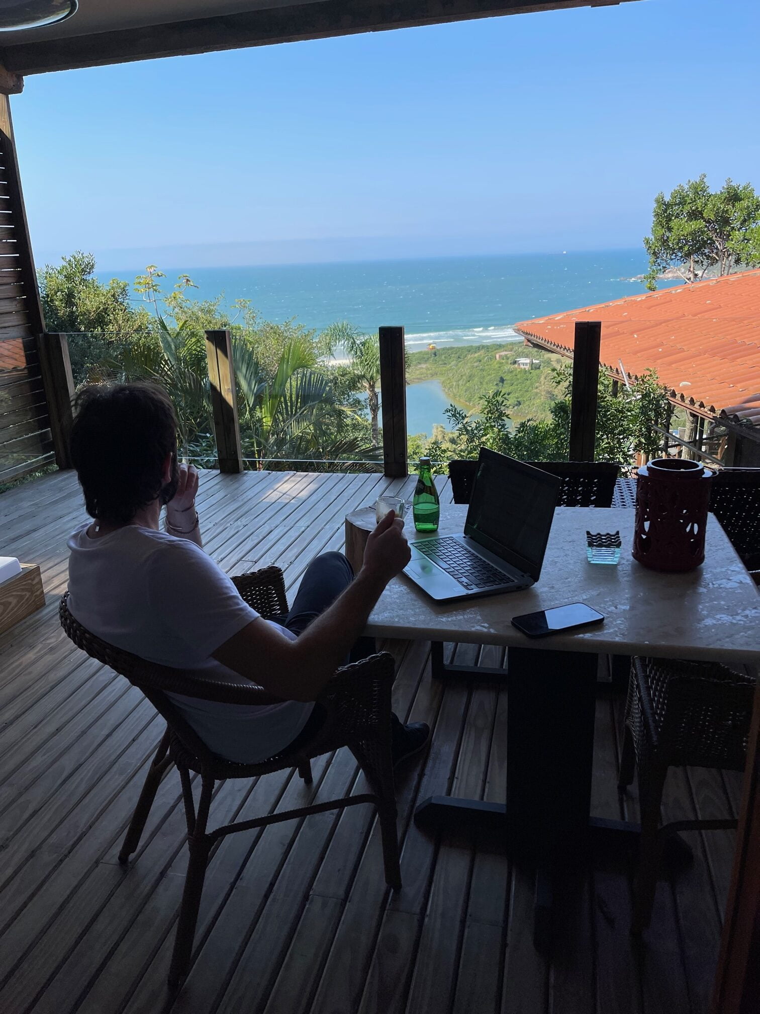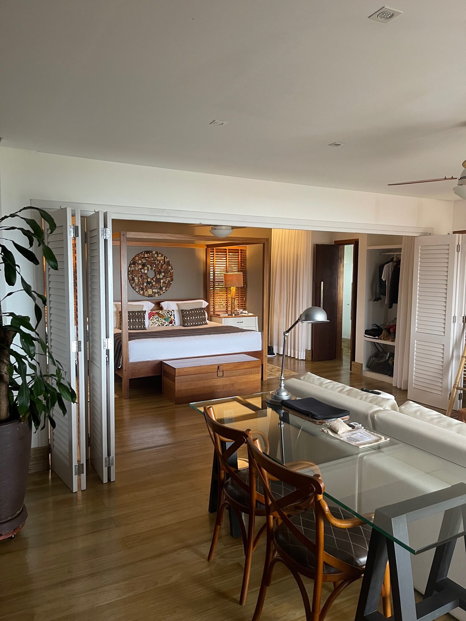 Fiquei hospedado na ampla e luxuosa Casa Terra. A paleta de cores suaves, incluindo tons de branco, bege e cinza, cria uma atmosfera serena e relaxante. Percebe-se de cara o mobiliário de alta qualidade, belos quadros, uma confortável cama king-size, lençóis macios e travesseiros de plumas que proporcionam uma experiência de sono incrível ao som das ondas. Uma varanda com vista para o mar, hidromassagem e chaises longs para se perder no tempo. As comodidades e bom gosto não param por aí: adega climatizada, cafeteira Nespresso, amenities Natura Ekos, banheiro com duas duchas, toalhas de algodão egípcio e a lista é infinita.