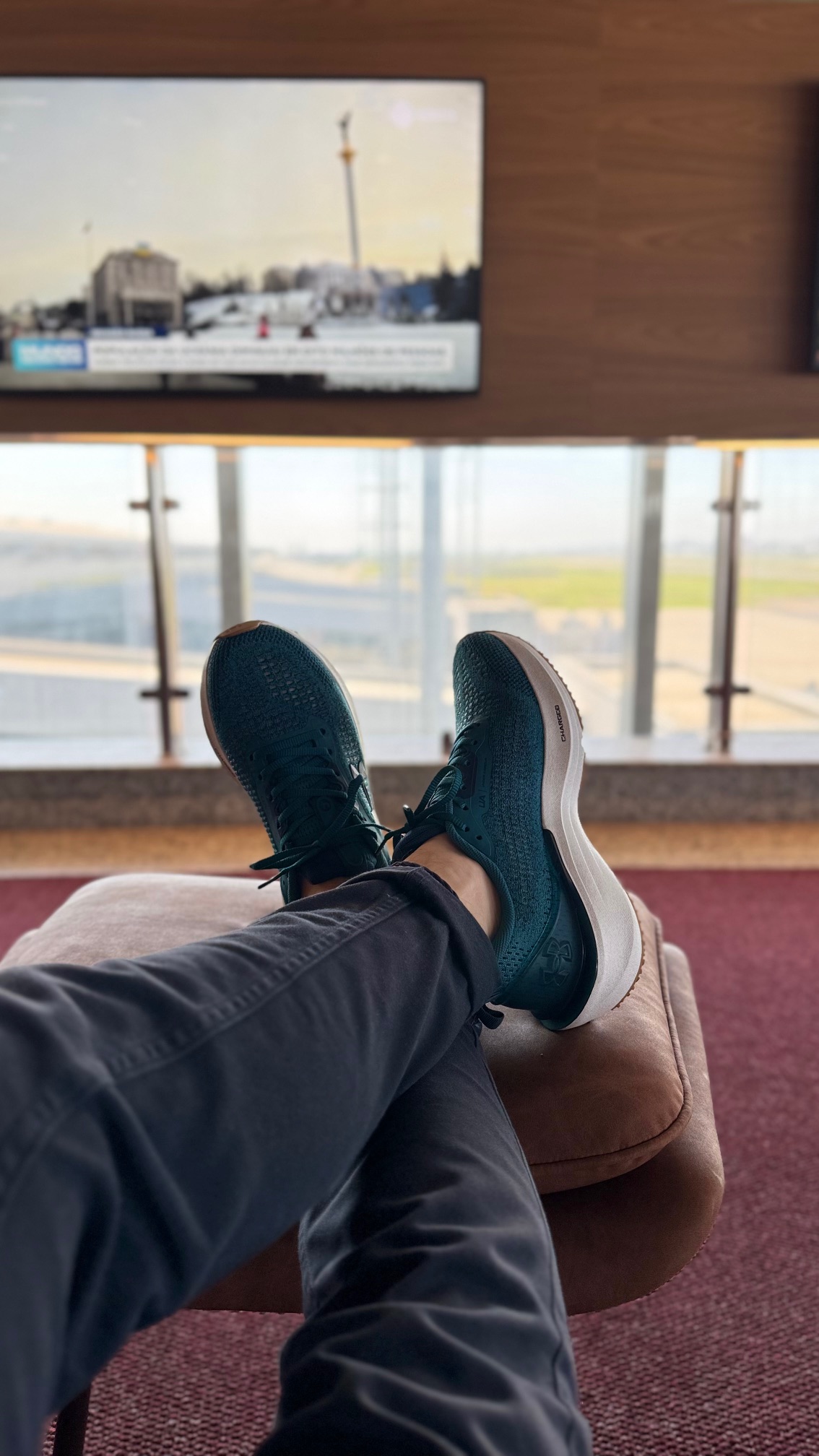 Agora, deixa eu falar de um detalhe que me surpreendeu: o quanto ele é bonito. Desde que postei uma foto nas redes sociais usando ele no aeroporto, um monte de gente veio perguntar qual era o modelo. E não é pra menos – o design é moderno, com um visual clean e super versátil. Ele combina tanto com looks esportivos quanto casuais, e isso faz dele um tênis que não fica limitado só à prática esportiva. Pode ser casual.
