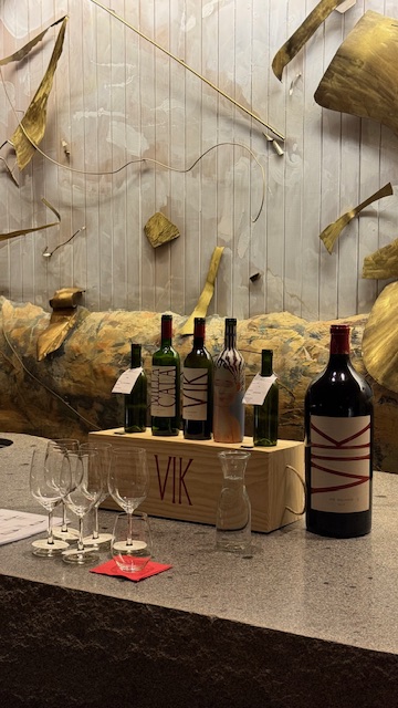 Durante minha hospedagem, vivi também dois momentos memoráveis: um jantar no restaurante Milla Milla e uma degustação com todos os rótulos da vinícola. O restaurante, envidraçado e com uma adega lindíssima, oferece uma cozinha que respeita o terroir e surpreende com elegância. Já a degustação, conduzida com maestria, apresentou toda a linha da Vik, incluindo o novo Stone VIK, um vinho natural, biodinâmico, com complexidade e frescor impressionantes. Feito com Cabernet Franc, Cabernet Sauvignon e Carménère, ele revela notas de frutas negras, ervas e muita mineralidade. Uma verdadeira experiência líquida que honra o solo chileno.