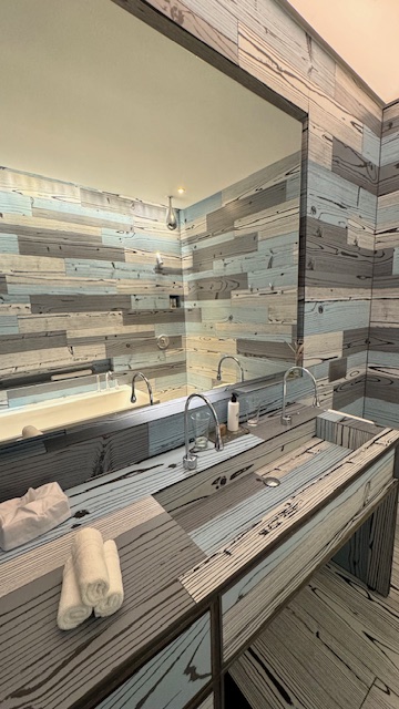 Fiquei hospedado na suíte Graphite, uma das 22 acomodações do hotel. Extremamente silenciosas e sofisticada. Ao entrar, o que se percebe é o silêncio e o bom gosto. A automação da iluminação e das cortinas permite transformar o ambiente conforme o desejo do hospede: luz natural invadindo os espaços pela manhã, penumbra aconchegante ao entardecer, luz quente direcionada a noite. Tudo é pensado nos mínimos detalhes. A cama, envolvente. O conforto térmico, impecável (estava 4 graus a noite). O chuveiro? Um espetáculo à parte: de design minimalista e pressão perfeita, transformando o banho em um verdadeiro ritual juntamente com a banheira.